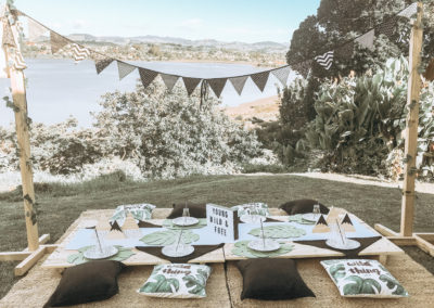 Pretty and whimsy, gorgeous florals adorn our sleek low wooden tables. With pale pinks, gold and pops of plum, this garden party setup is breathtakingly beautiful. Perfect for so many occasions, think birthday party, bridal shower, baby shower or a get-together with the girls! any excuse will do!