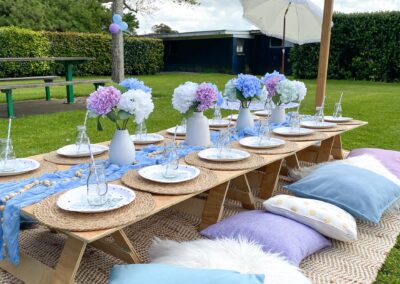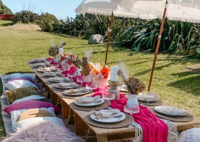 The perfect theme for every occasion. Calm, earthy, neutral tones with an eclectic mix of textures and patterns to add detail and interest – the Coastal Boho Picnic is defnitely a favourite of many.